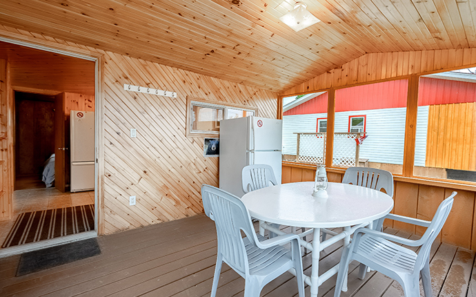 - Cedar deck with picnic table and Weber gas grill